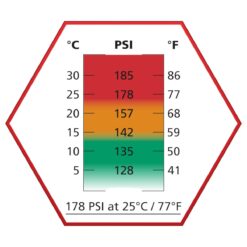 - Pressure: 178 PSI at 25°C